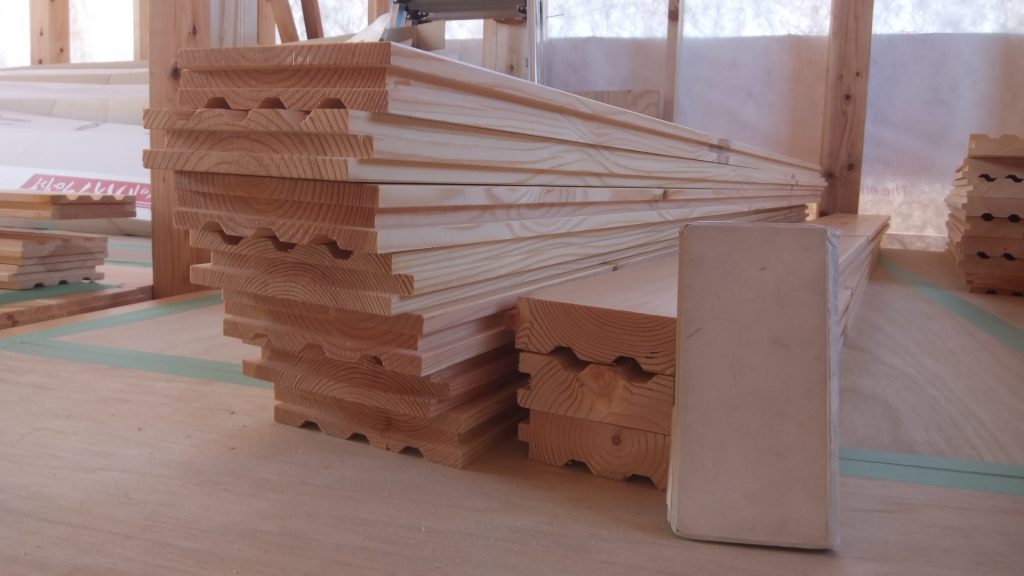 桧の床板と 特注し 日本の桧を わざわざベトナムまで運び これまた 内田工務店用で わざわざ作って貰っている