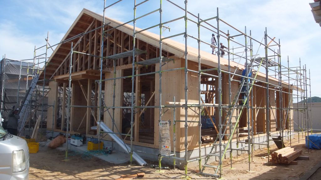 上棟終了 担当は吉松棟梁 応援は田村棟梁 にてコツコツ中